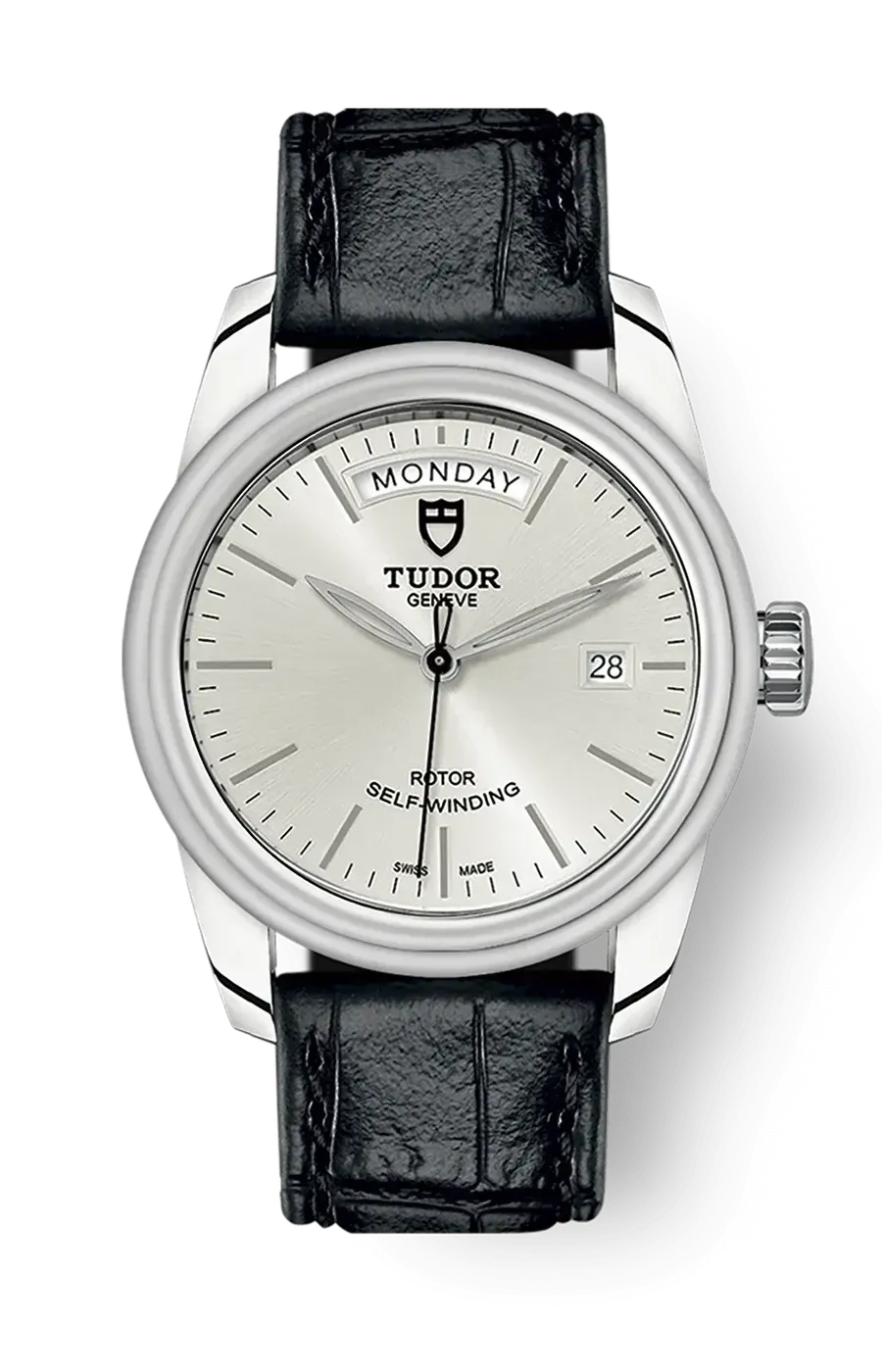 SilverCut-out feuille handsDate at 3 o’clockDay of the week at 12 o’clock