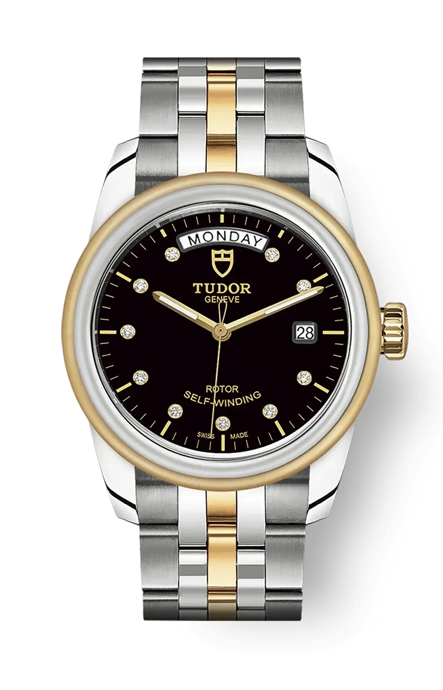Black with 10 diamondsDate at 3 o’clockDay of the week at 12 o’clock