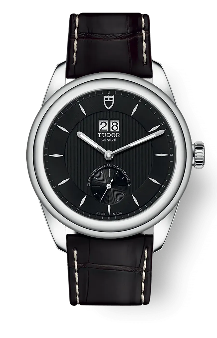 Black with rhodium-plated or yellow gold-plated hour markersSmall seconds at 6 o'clockLarge date in a double window at 12 o'clock