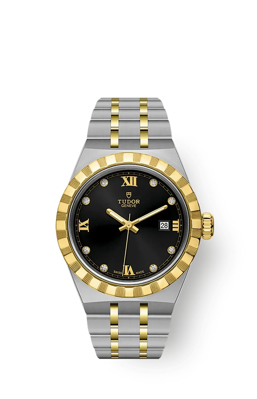 Black, sunray-finish, with diamondsApplied Roman numeralsDate at 3 o'clock