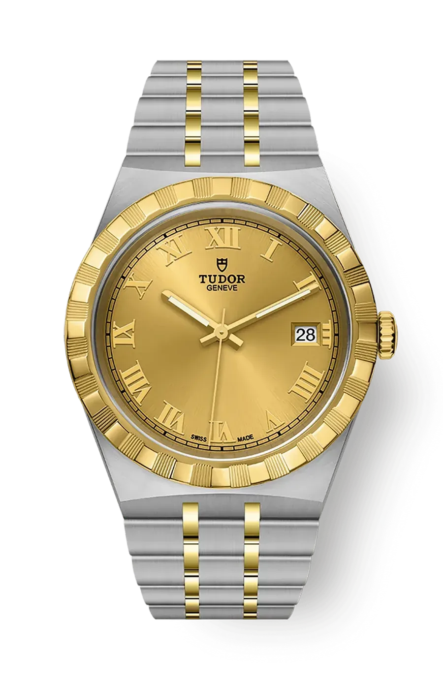 Notched bezel in yellow gold, alternating cut grooves and polished finish